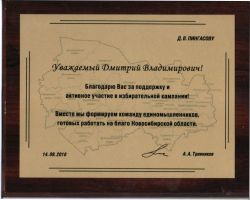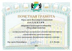 Почетная грамота мэрии г. Новосибирска, 2016 г.