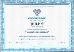 Диплом ФКУ «Сибуправатодор», 2017 г.