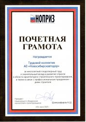 Почетная грамота НОПРИЗ, 2025 г.